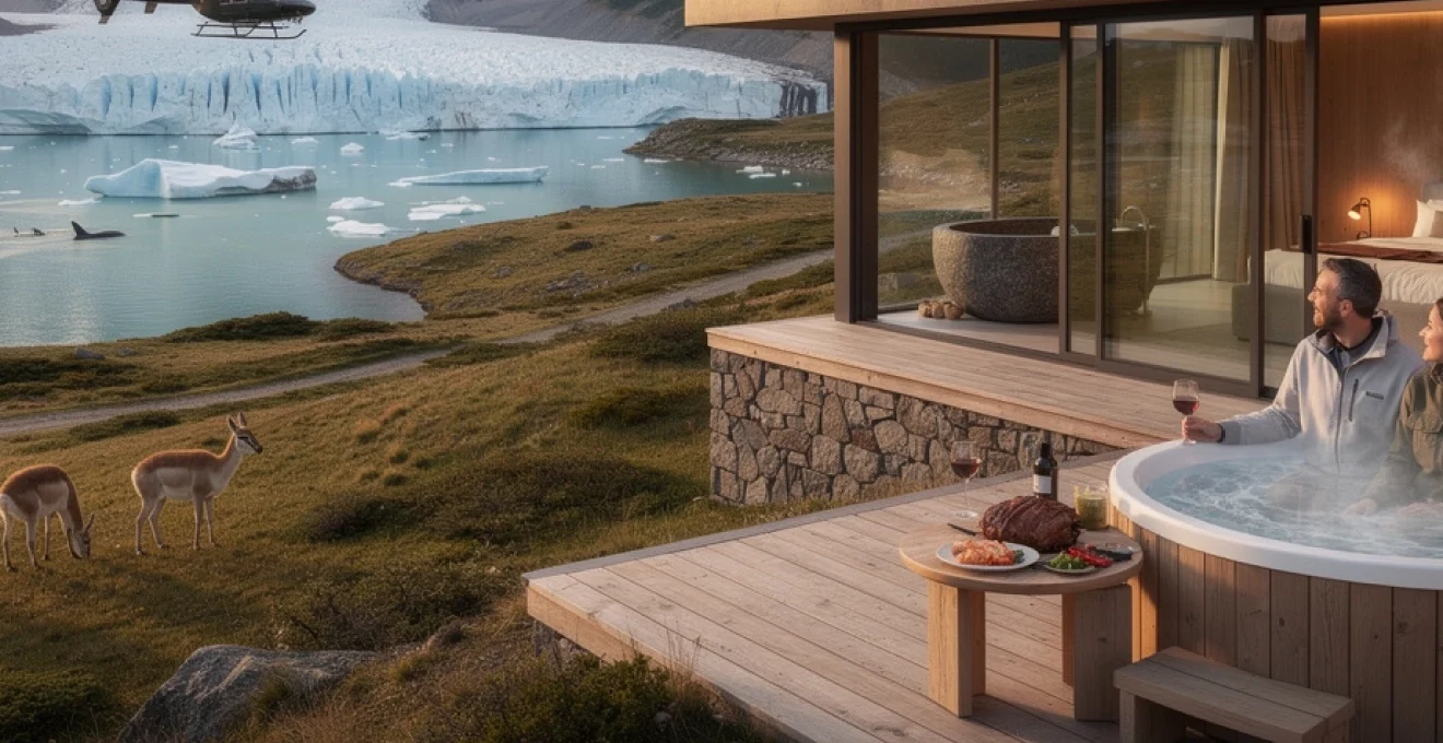 Dans les lodges haut de gamme patagoniens, les suites premium sont conçues comme de véritables observatoires privés. À El Calafate, certains hébergements offrent des suites avec baies vitrées et terrasses privatives dominant le lac Argentino, dont les teintes varient du turquoise laiteux au bleu profond selon la lumière et la saison. Plus au sud, aux abords du détroit de Magellan, d’autres lodges permettent d’observer le ballet des bateaux d’expédition et parfois le passage de dauphins ou de lions de mer, confortablement installé dans un salon baigné de lumière.