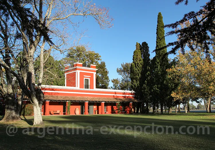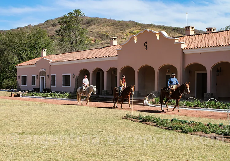 La casa principal constitue le cœur résidentiel de l’estancia. Dans les plus anciennes propriétés, elle adopte un plan colonial, de plain-pied, organisé autour d’un patio intérieur bordé de galeries à arcades. Les murs épais en adobe ou en pierre, les toits couverts de tuiles canal et les couleurs chaudes (ocres, rouges, jaunes) rappellent l’héritage andalou et castillan de l’architecture rurale.